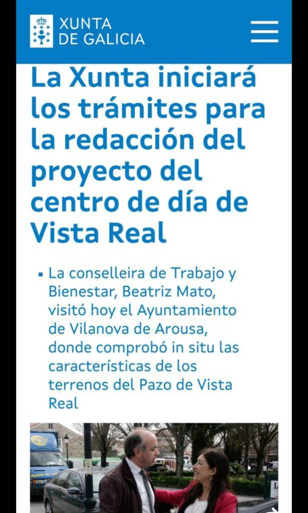 A pocos días de las elecciones municipales de 2011, con visita de la conselleira incluida, el actual alcalde manifestó: «esperamos que el año que viene (2012) pueda estar ya en funcionamiento”. Las obras empezarían, según dijo el alcalde, semanas después de esas elecciones municipales porque “el coste de la construcción del centro de día correrá a cargo de la Xunta de Galicia y supera los 800.000 €, 750.000 € destinados a la edificación y 90.000 € al mobiliario”.